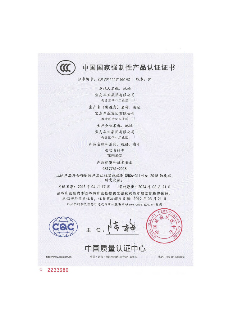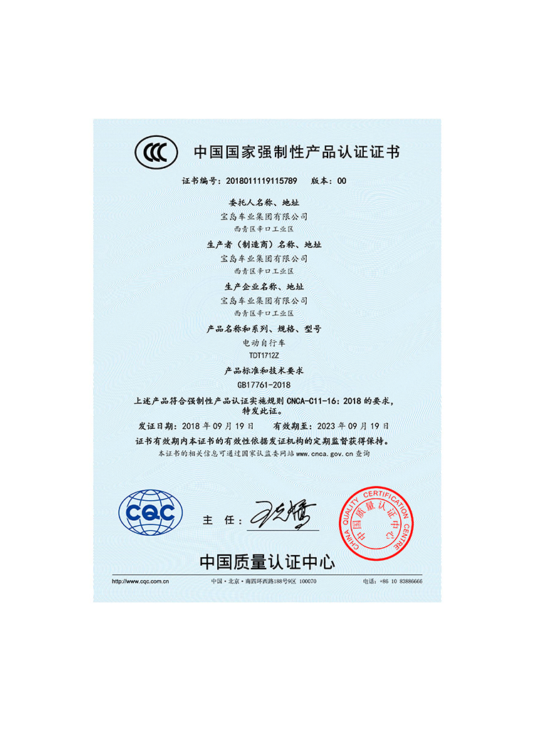 宝岛积极响应新国标政策要求,早在2015年,就已经获得电摩生产资质和3C认证,